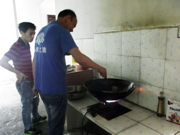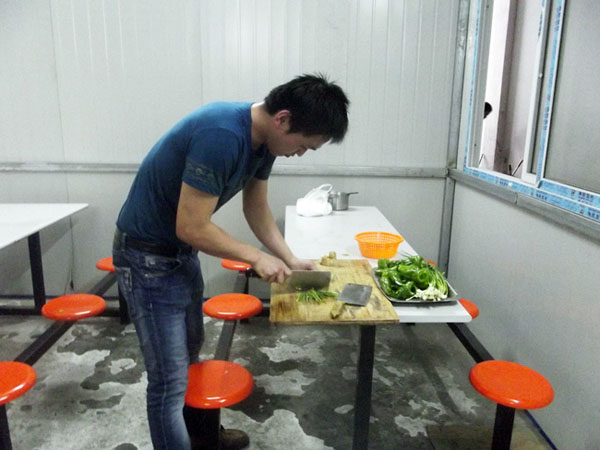 上午大家團(tuán)結(jié)協(xié)作,齊心協(xié)力洗盤子切菜炒菜。